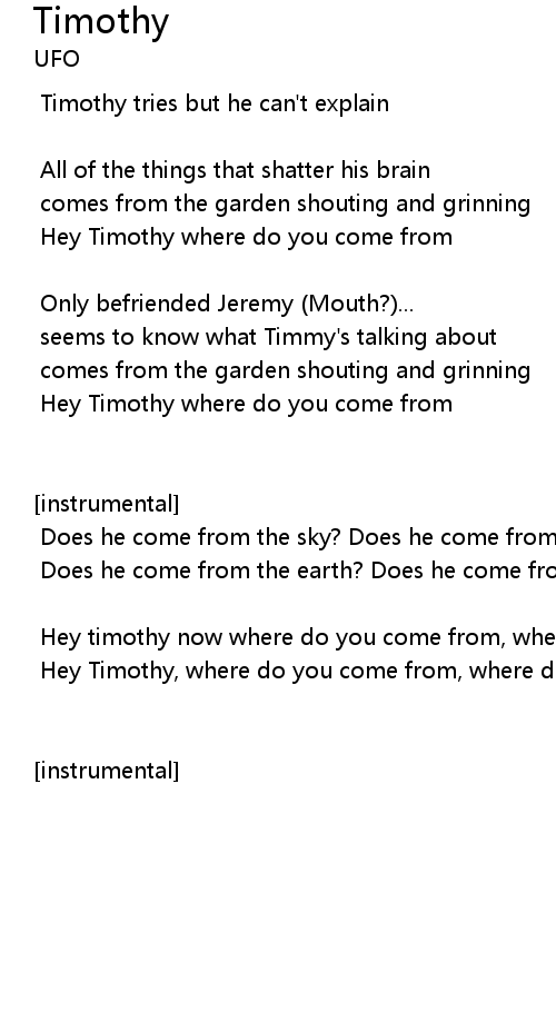 | Hey timothy now where do you come from, where do you come from Timothy? | |