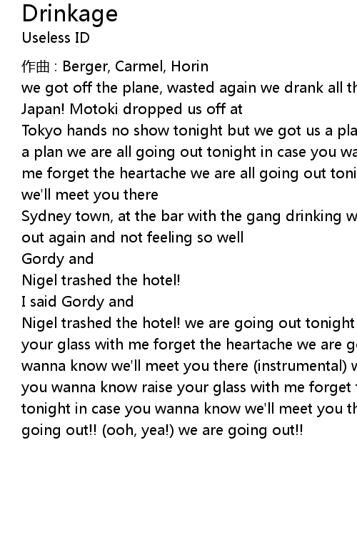 | Tokyo hands no show tonight but we got us a plan! no show tonight but we got us a plan we are all going out tonight in case you wanna know raise your glass with me forget the heartache we are all going out tonight in case you wanna know we'll meet you there | |