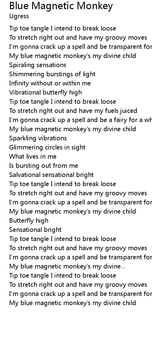 | My blue magnetic monkey's my divine child |