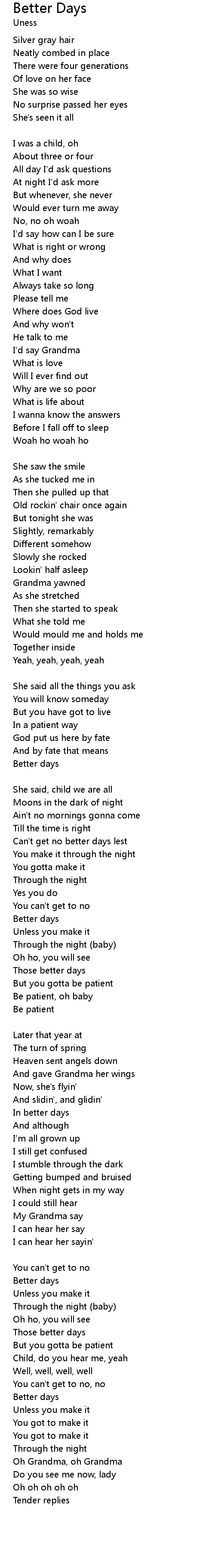 | Can't get no better days lest | |