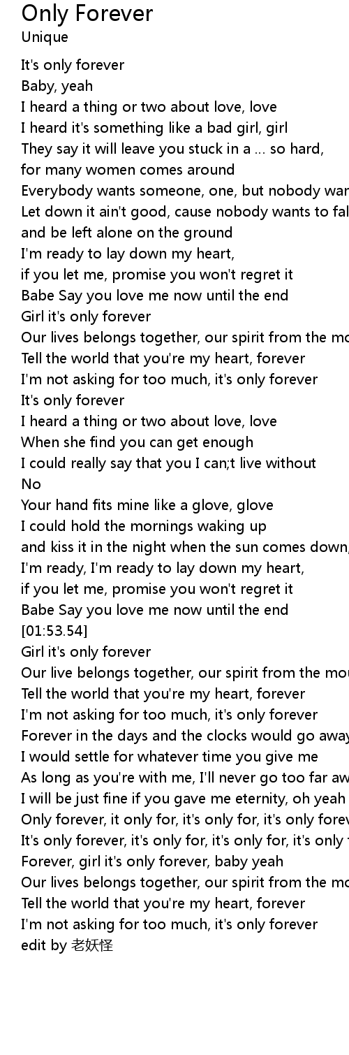 | [02:58.62] | Forever, girl it's only forever, baby yeah |