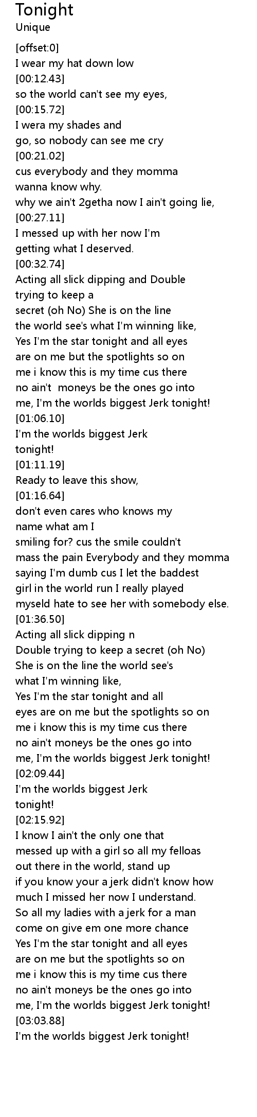 So all my ladies with a jerk for a man |