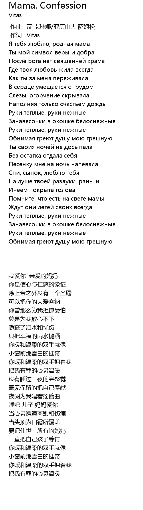 | [00:30.76] | 我爱你 亲爱的妈妈 |