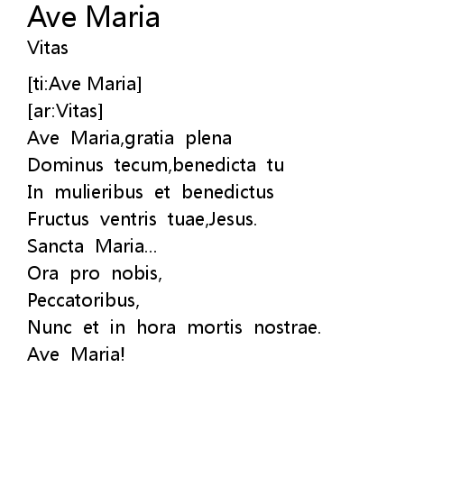 | [00:34.592] | Dominus tecum,benedicta tu |