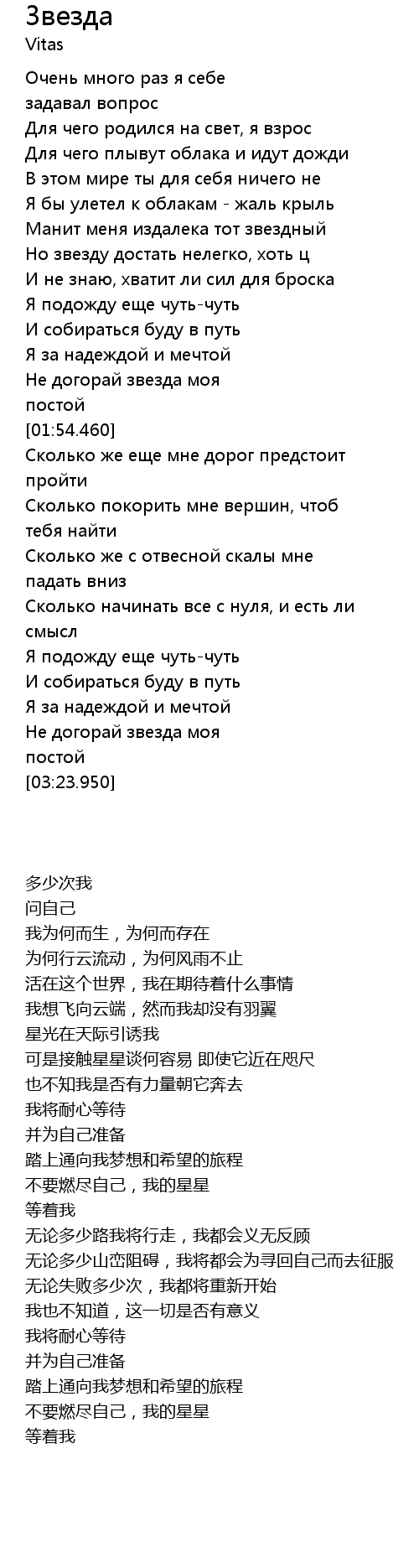 | [02:27.290] | Сколько покорить мне вершин, чтоб тебя найти |