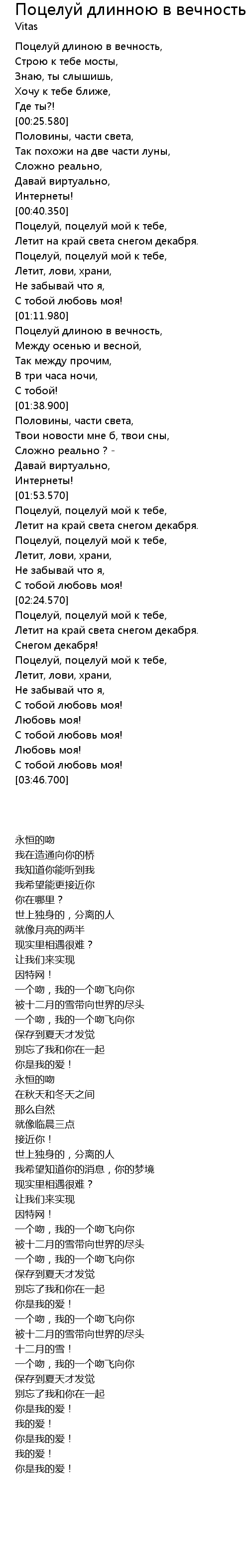 | [00:14.500] | Поцелуй длиною в вечность, |