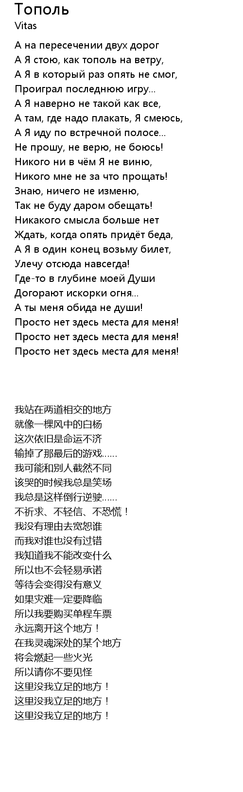 | 歌曲 | Тополь |