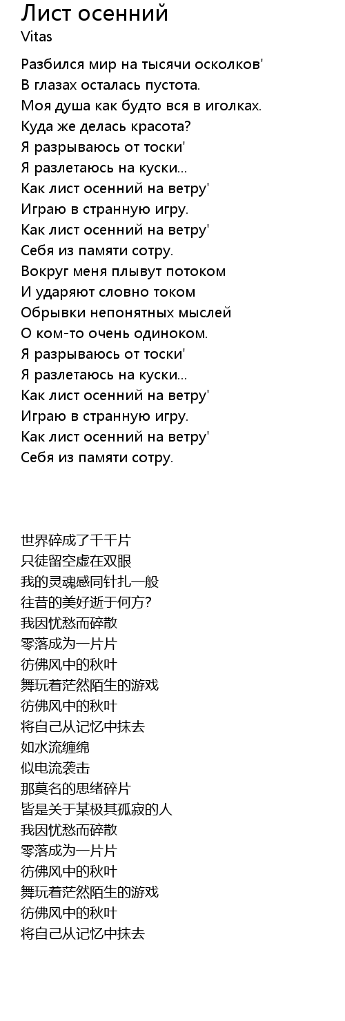 | 歌曲 | Лист осенний |