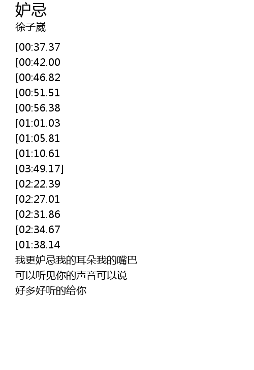 | [03:29.18][02:27.01][01:20.23] | 我妒忌我的心看不到你时可以想着你 |
