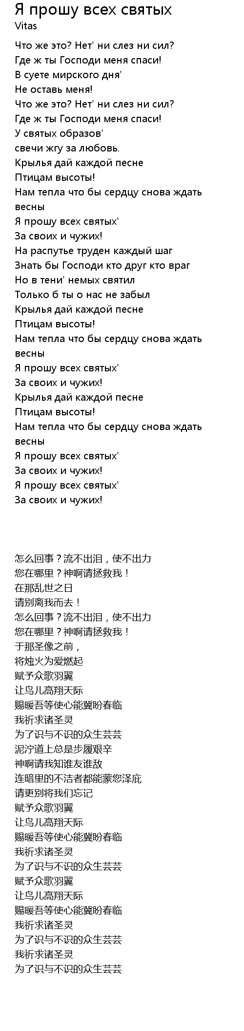 | 歌曲 | Я прошу всех святых |
