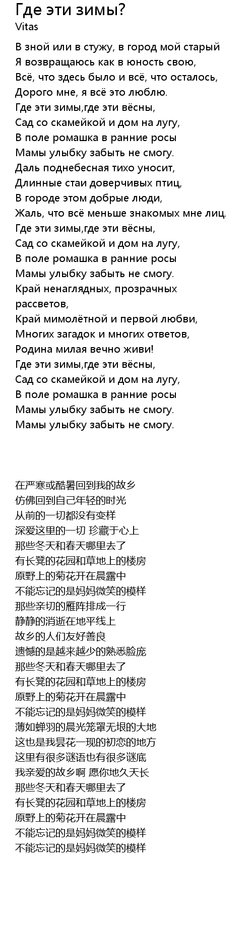 | [00:31.68] | Где эти зимы,где эти вёсны, |