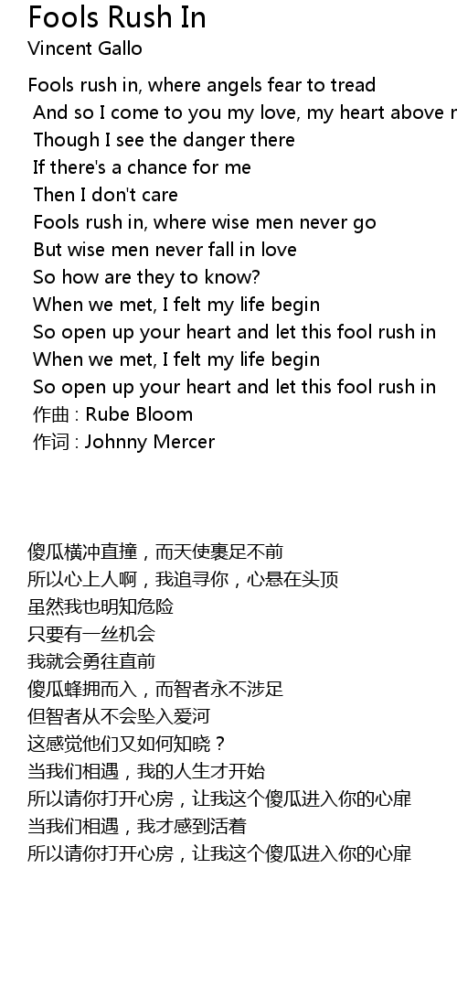 | 歌曲 | Fools Rush In |