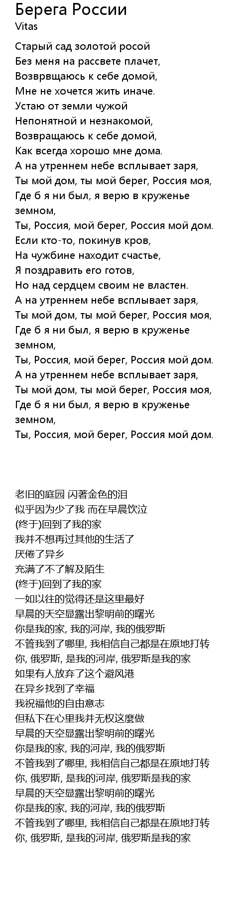 | [02:46.01] | 你, 俄罗斯, 是我的河岸, 俄罗斯是我的家 |