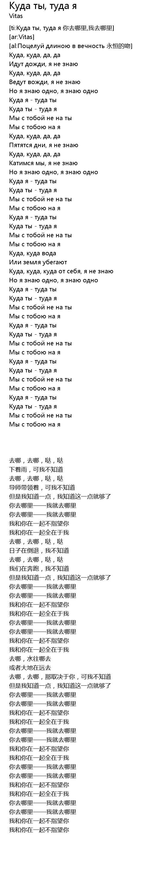 | [ti:Куда ты, туда я 你去哪里,我去哪里] | |