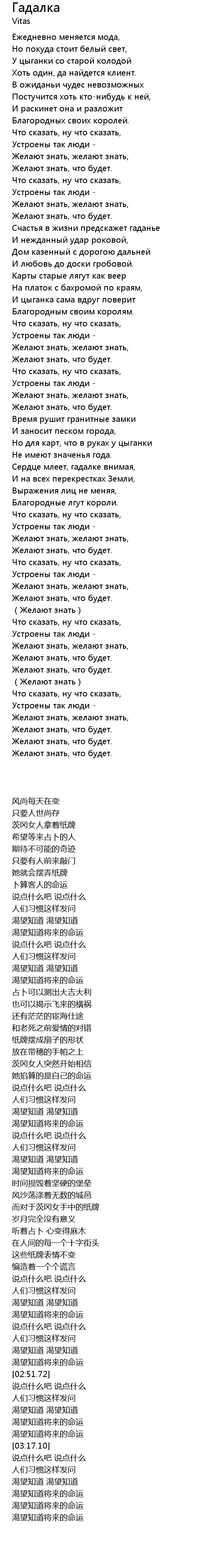 | [01:07.80] | Счастья в жизни предскажет гаданье |