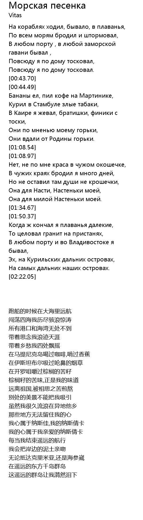 | [02:04.35] | В любом порту и во Владивостоке я бывал, |