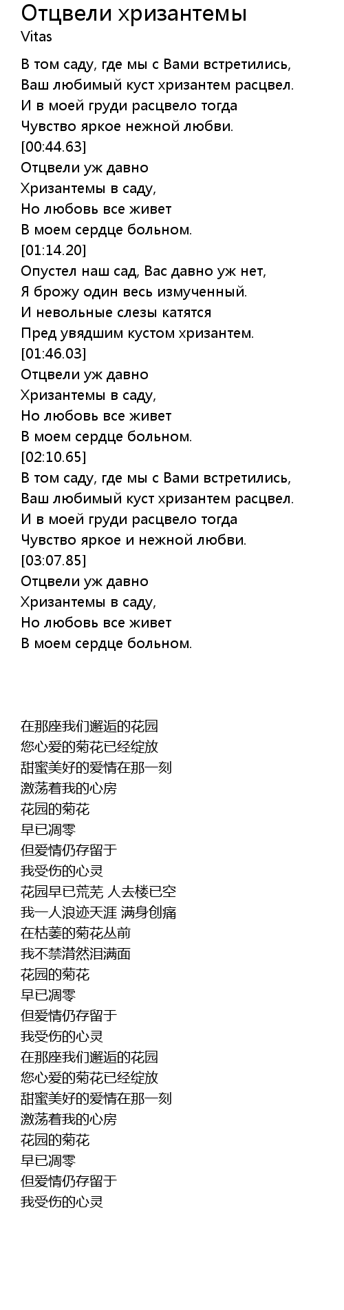 | [01:41.05] | Пред увядшим кустом хризантем. |