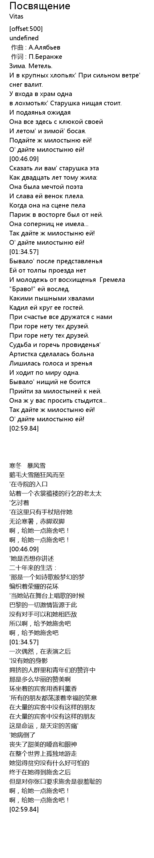 | [00:14.58] | 站着一个衣裳褴褛的行乞的老太太 |
