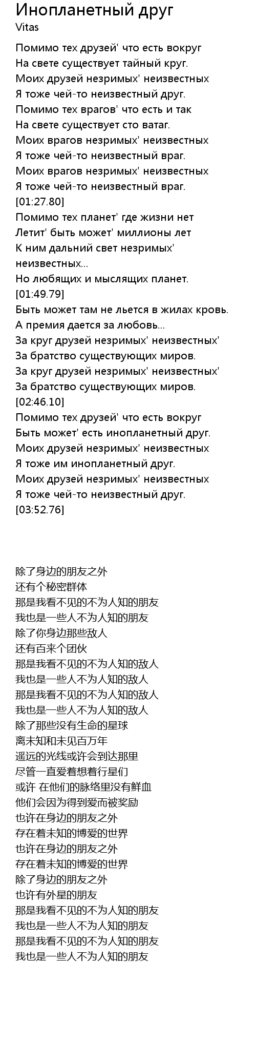 | [03:46.76] | Я тоже чей-то неизвестный друг. |
