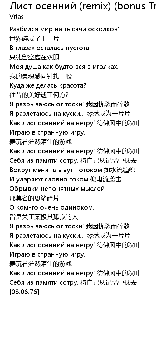 | [02:51.28] | Как лист осенний на ветру' 彷佛风中的秋叶 |