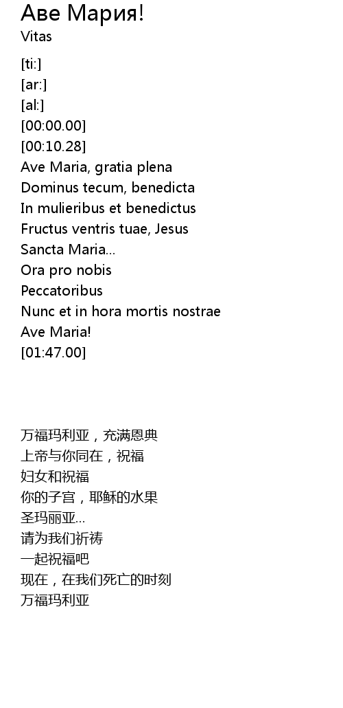| [00:14.16] | 万福玛利亚,充满恩典 |