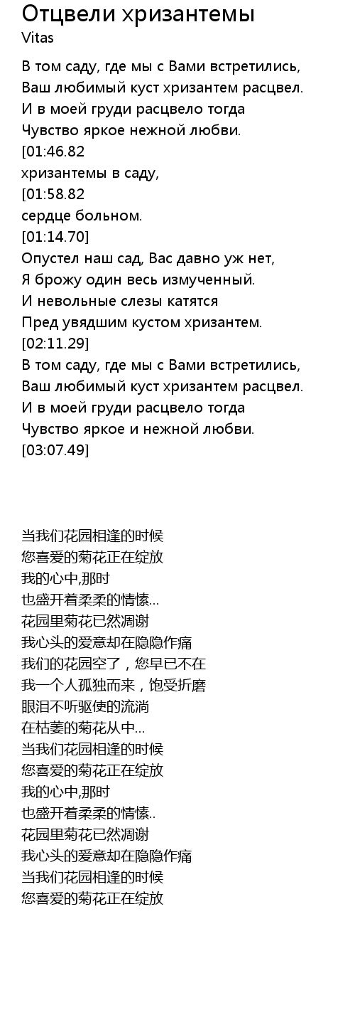 | [02:49.57] | Ваш любимый куст хризантем расцвел. |