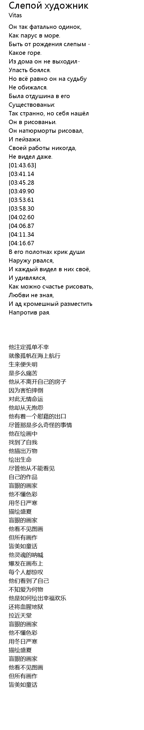 | [01:45.08][03:41.14] | Слепой художник, |