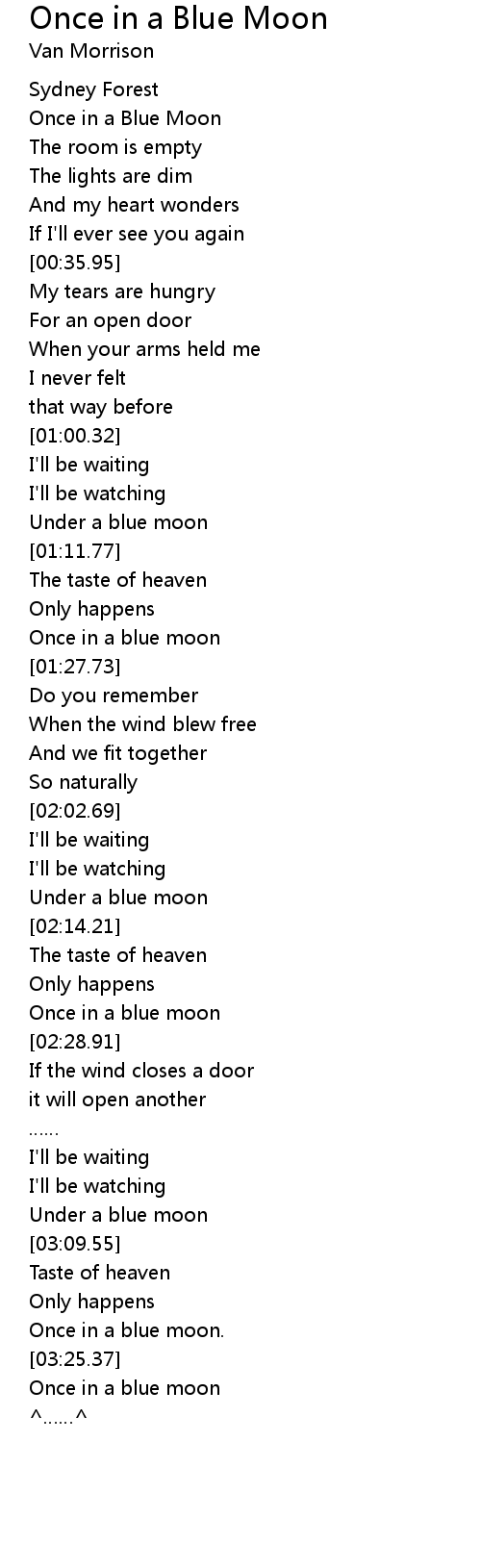 | [03:05.61] | Under a blue moon |