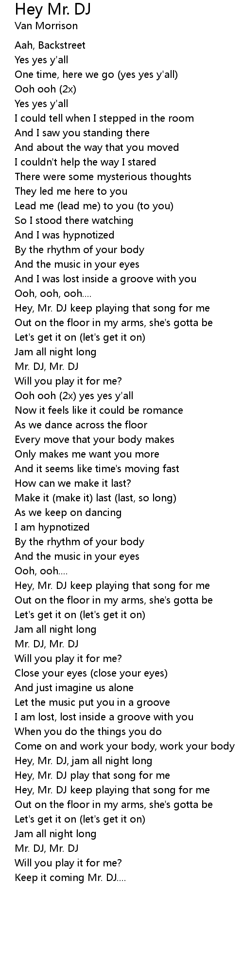 Hey, Mr. DJ keep playing that song for me |