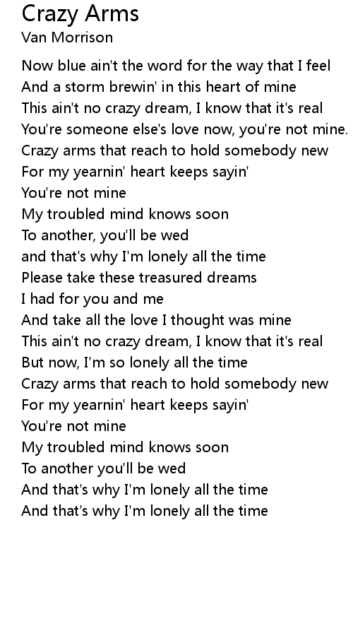 Crazy arms that reach to hold somebody new |