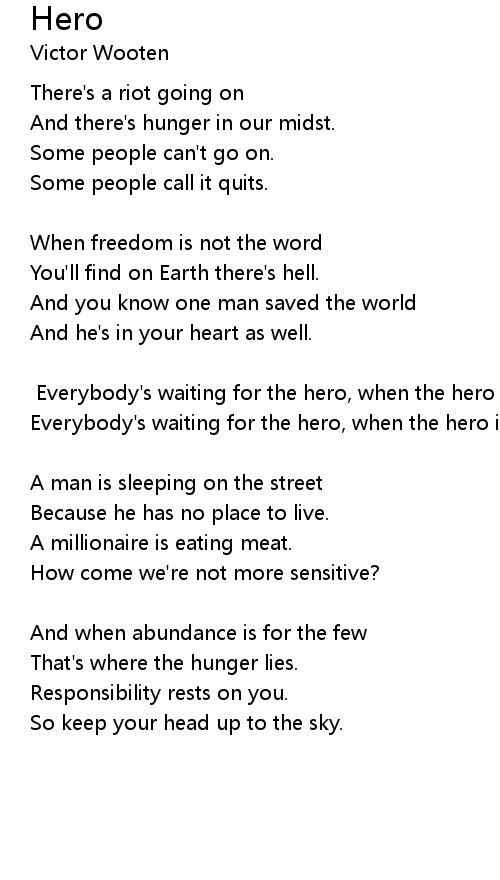 [Chorus:] Everybody's waiting for the hero, when the hero is in everyone.