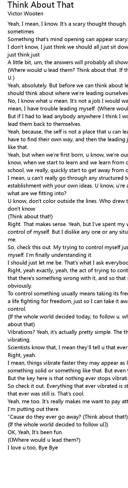 | (Where would u lead them? Think about that. If the whole world decided to follow U.) | |