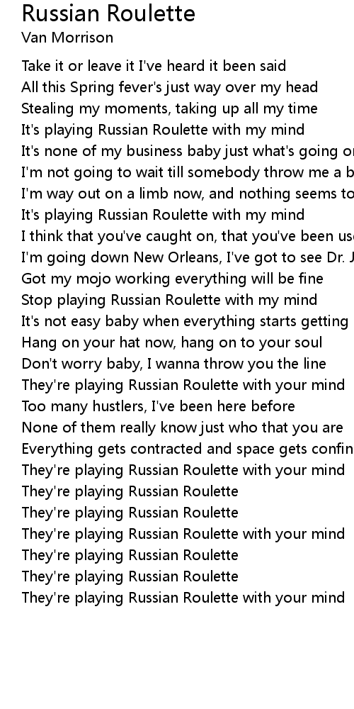 It's playing Russian Roulette with my mind |