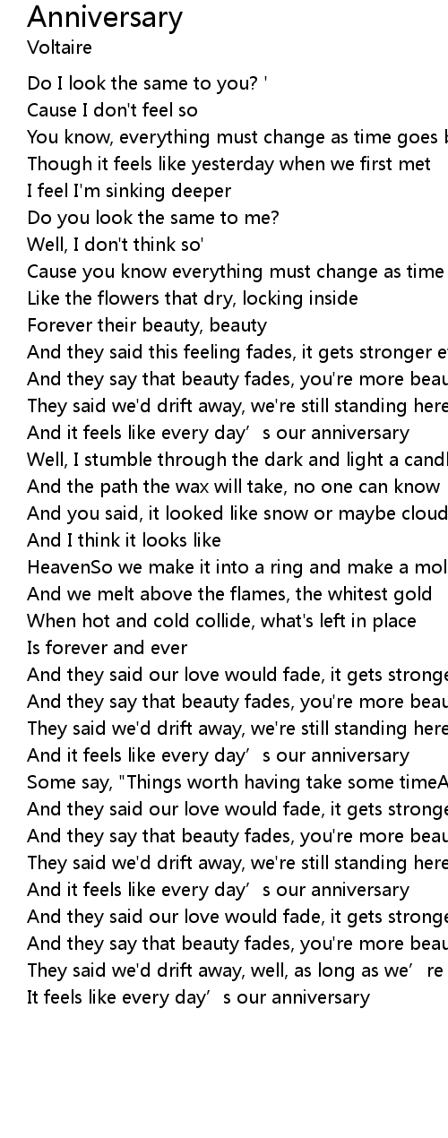 | And it feels like every day’s our anniversary | |