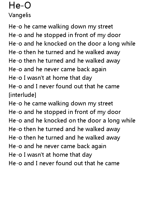 | He-o he came walking down my street | |