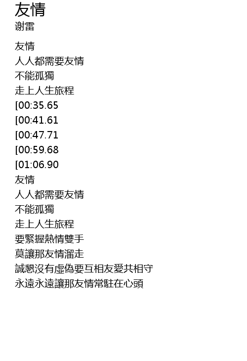 | [02:57.73][00:35.65] | 要珍惜友情可貴 |