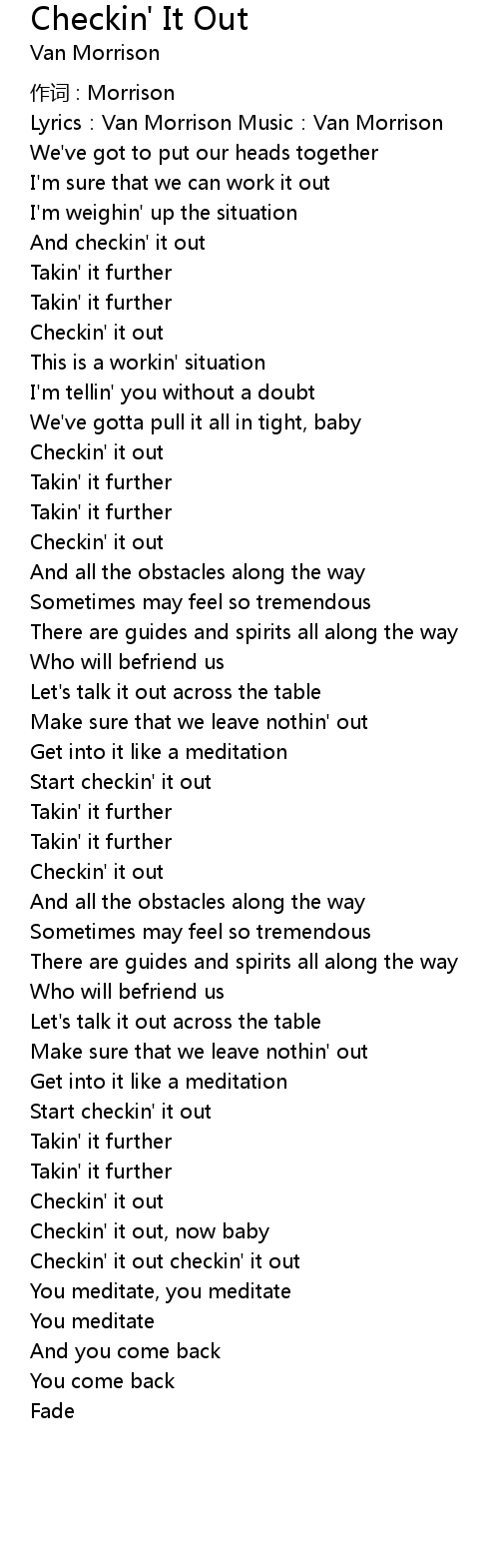 | Lyrics:Van Morrison Music:Van Morrison | |