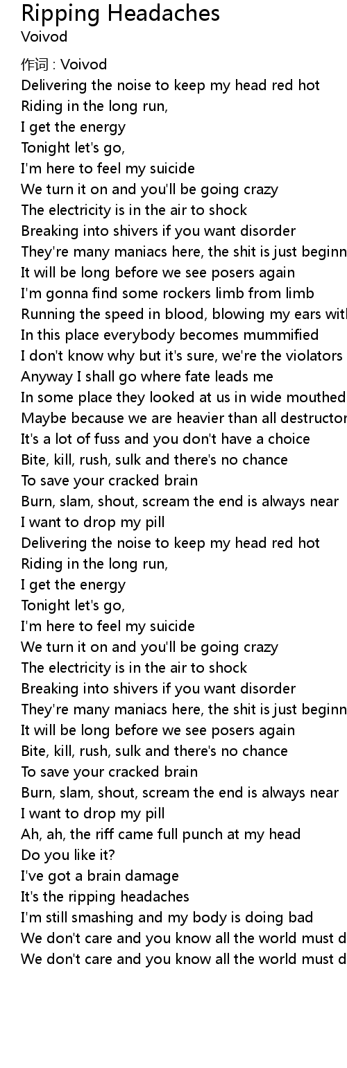 | 歌曲 | Ripping Headaches |