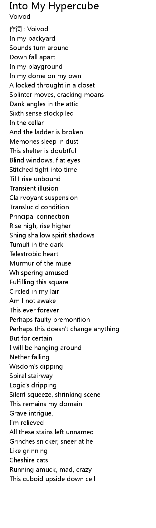 | 歌曲 | Into My Hypercube |
