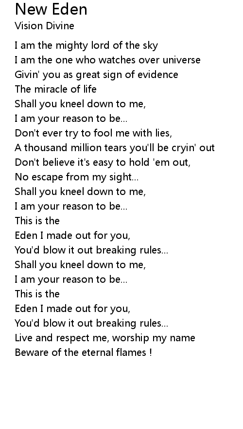 Eden I made out for you, |