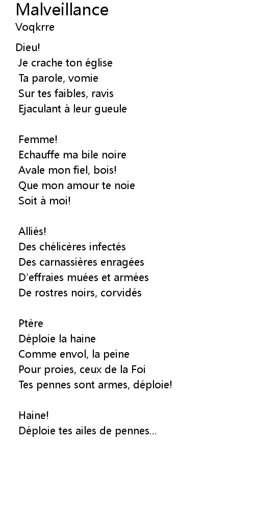 | 歌曲 | Malveillance |