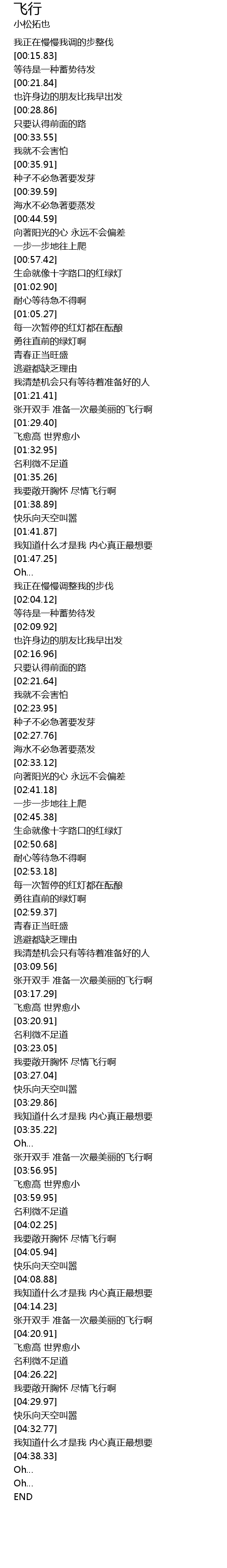 | [04:27.35] | 我要敞开胸怀 尽情飞行啊 |