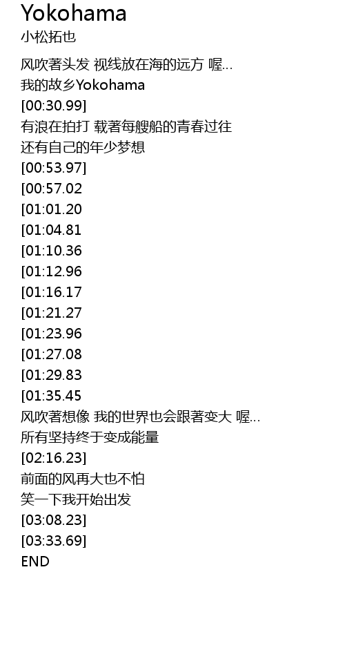 | [02:35.32][01:12.96] | 和Yokohama的童年生活 |