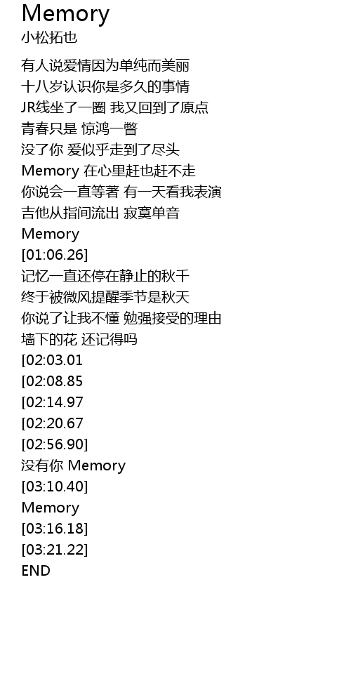 | [03:00.65] | 没有你 Memory |