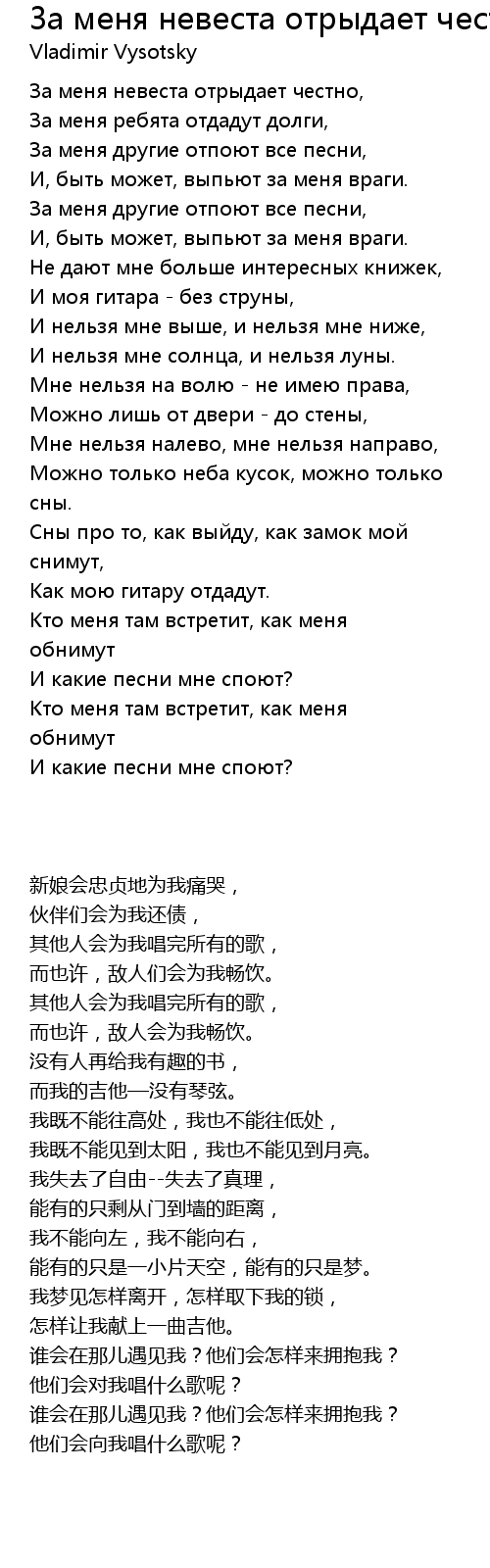 | 歌曲 | За меня невеста отрыдает честно... |