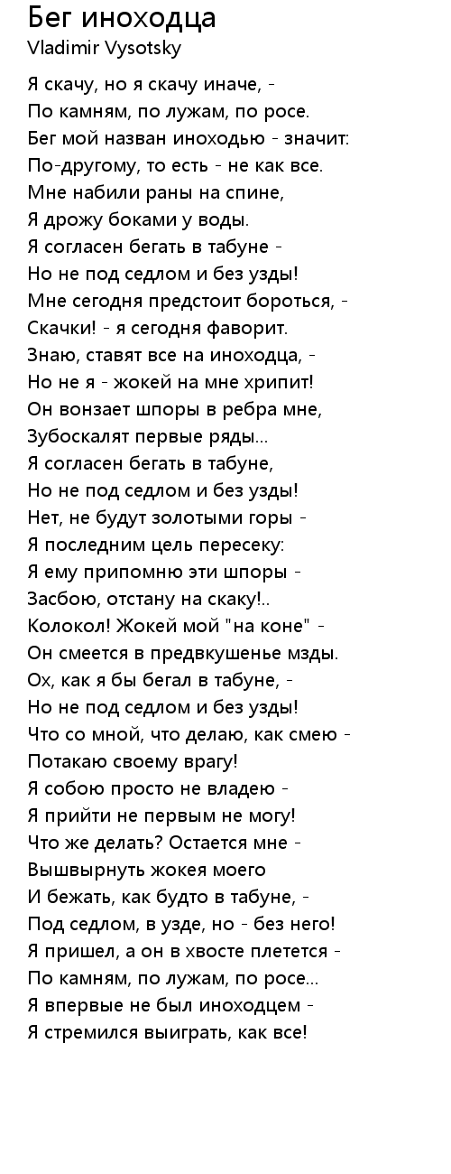 Бег мой назван иноходью - значит: |