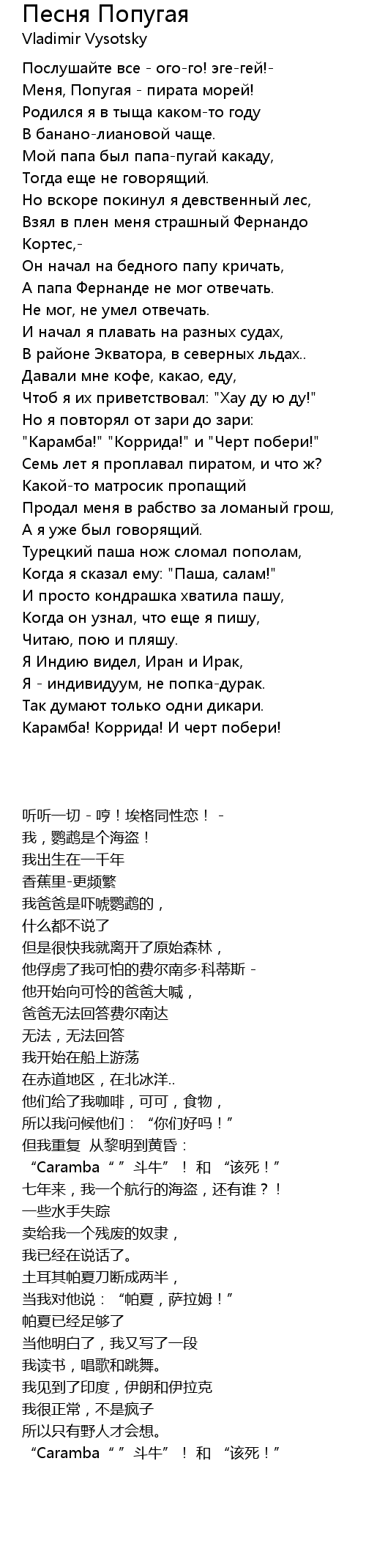 | 歌曲 | Песня Попугая |
