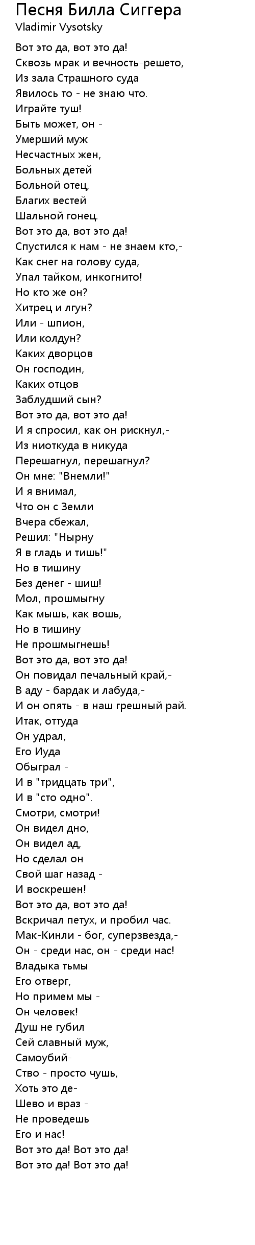 Песня Билла Сиггера 歌词