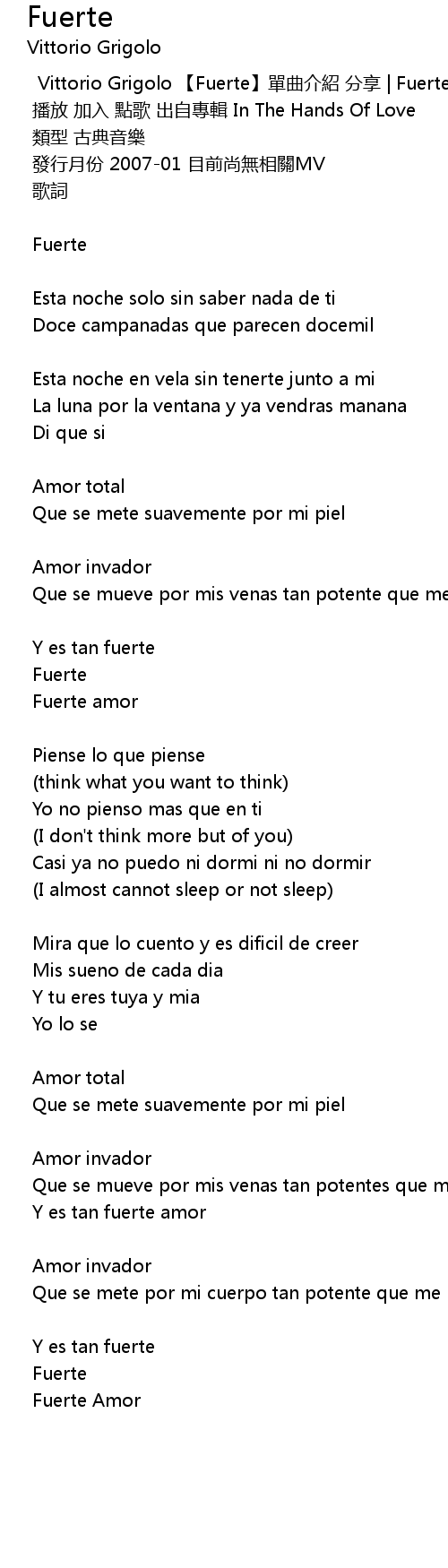 | Vittorio Grigolo 【Fuerte】單曲介紹 分享 | Fuerte | |