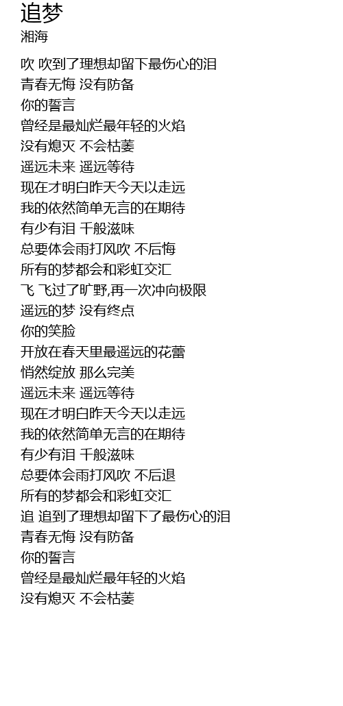 | [03:04.890] | 追 追到了理想却留下了最伤心的泪 |